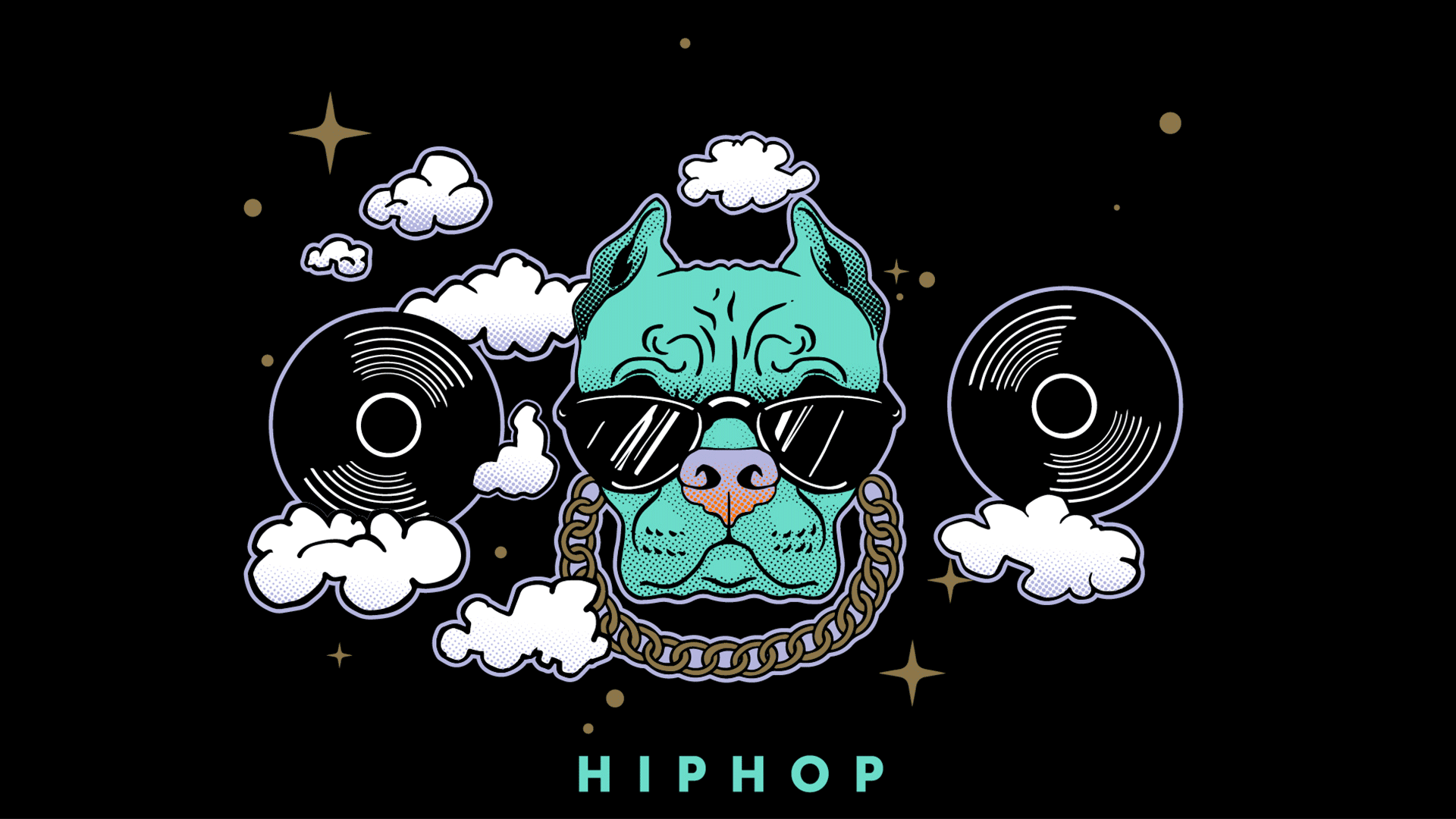 🐶 Hip-Hop: Ein Pitbull, selbstbewusst und cool – genau wie der Sound der Szene.